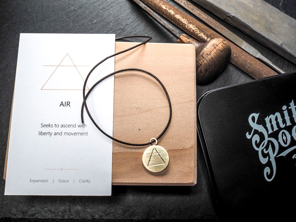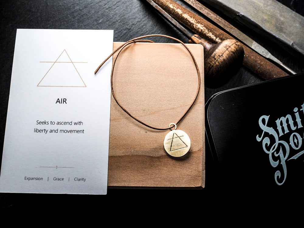 Carry with you the creative energy of expansion, grace and clarity. This pendant is handmade from 9ct gold with the alchemy symbol for Air and the strength of the triangle. A gift for your life's journey.
