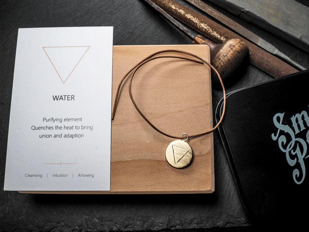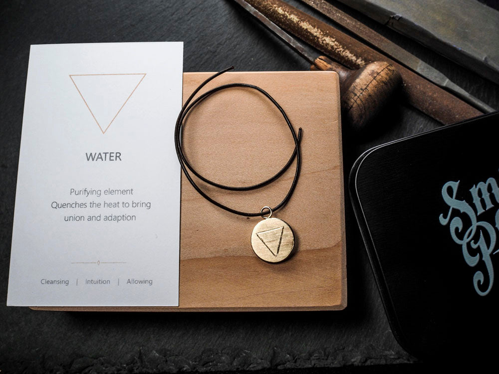 Carry with you the creative energy of allowing, cleansing and intuition. This pendant is handmade from 9ct gold with the alchemy symbol for Water and the strength of the triangle. A gift for your life's journey.